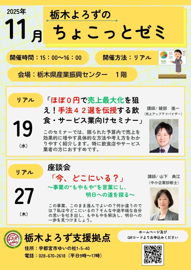 栃木よろずの「ちょこっとゼミ」11月開催のご案内